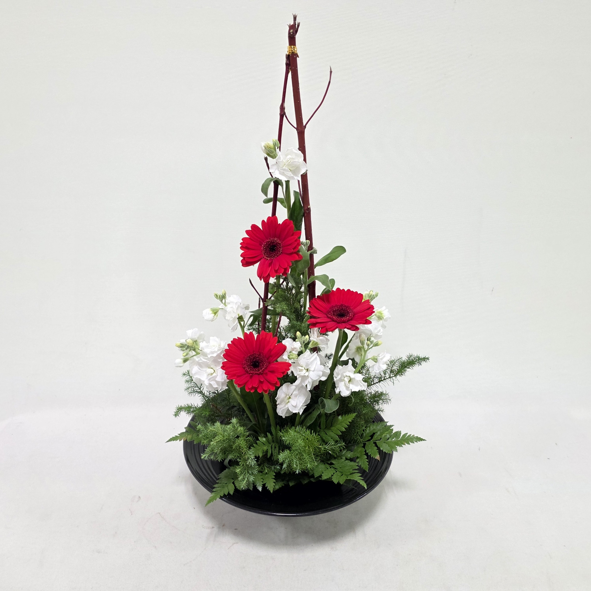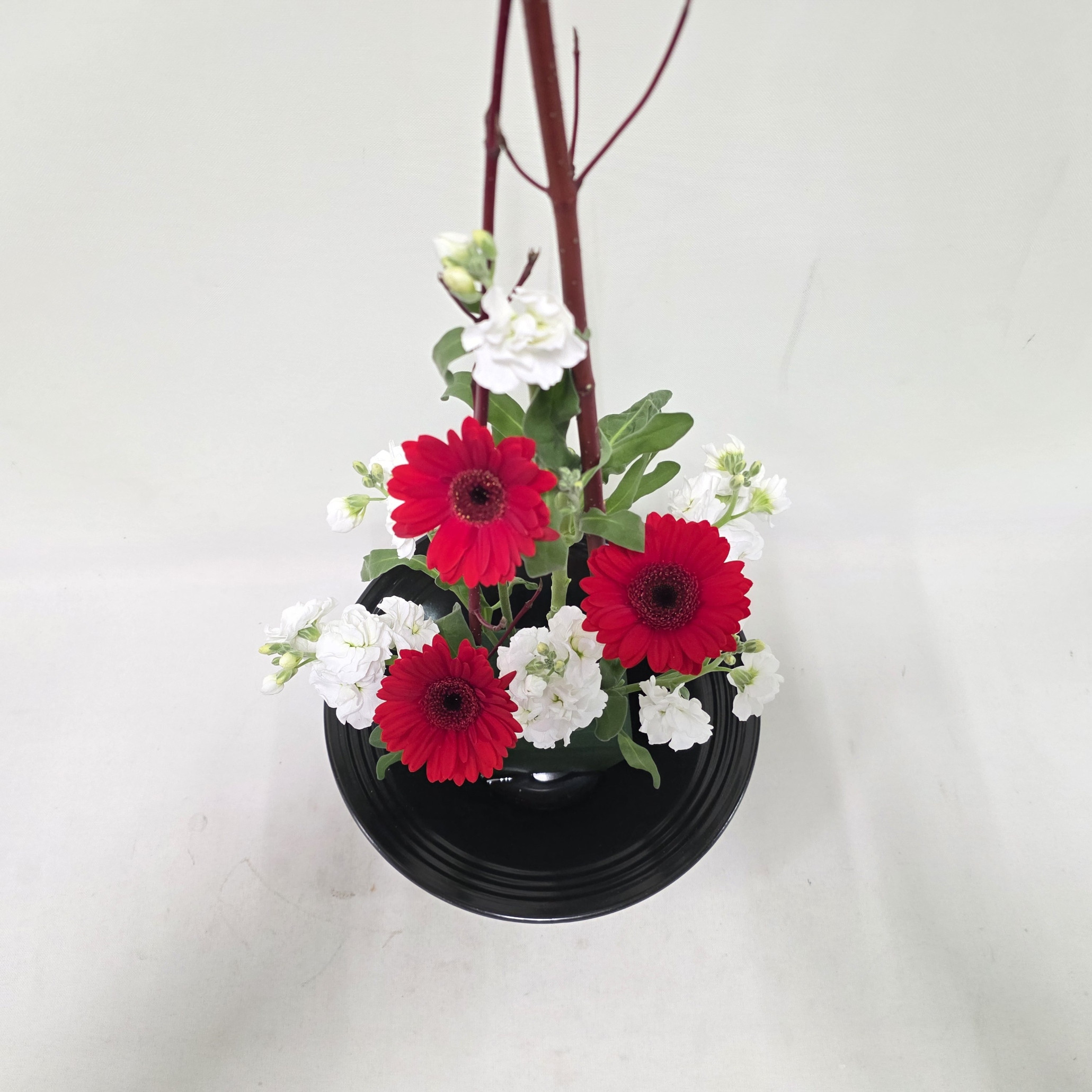 雪柳(染め)、菊(ロサーノシャルロッテ)、ガーベラ、千日紅、ポリシャス