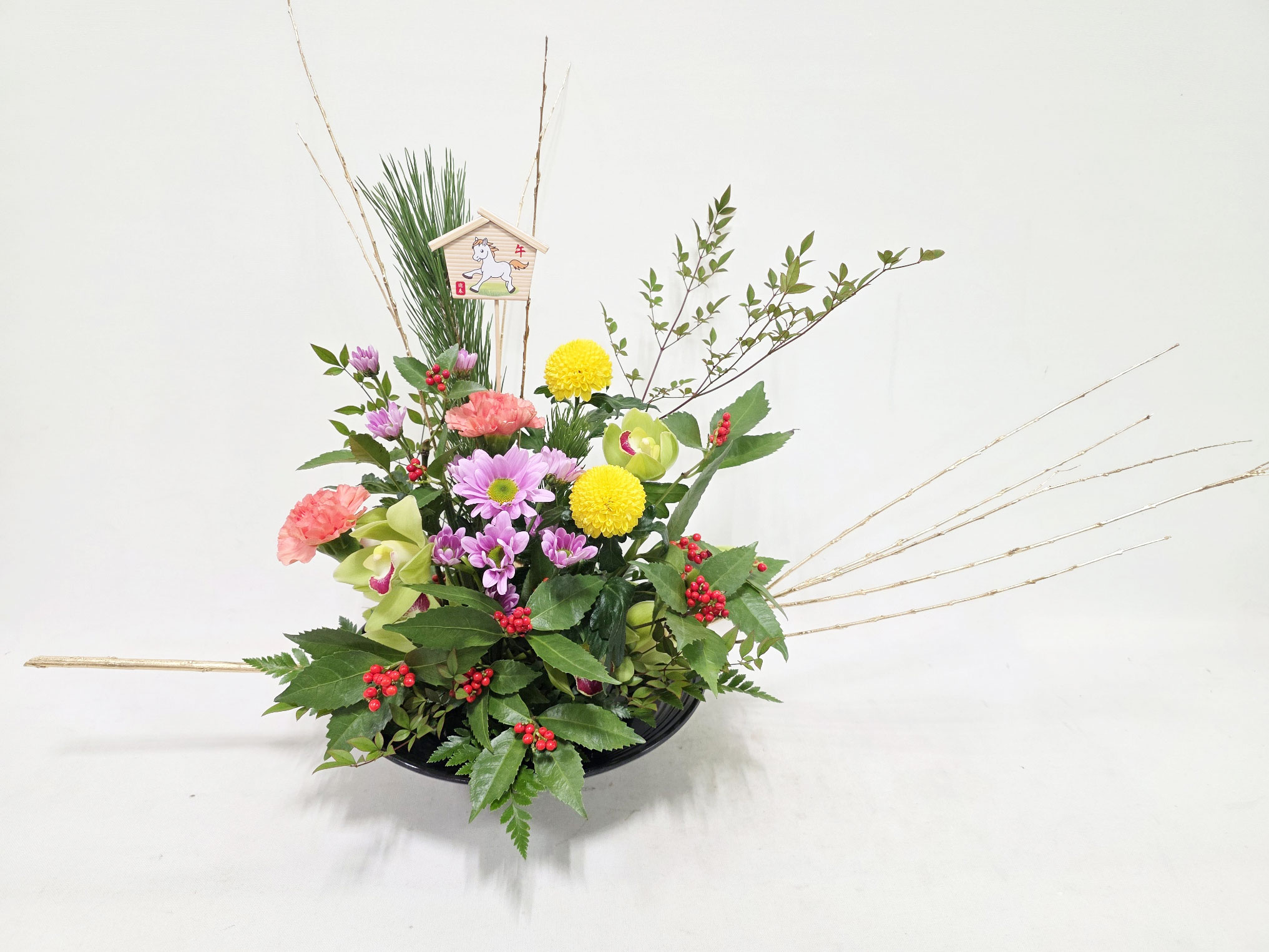 ⑳12月24日「馬九いく」9種の花材で新しい年うまくいくように願いを込めてアレンジ