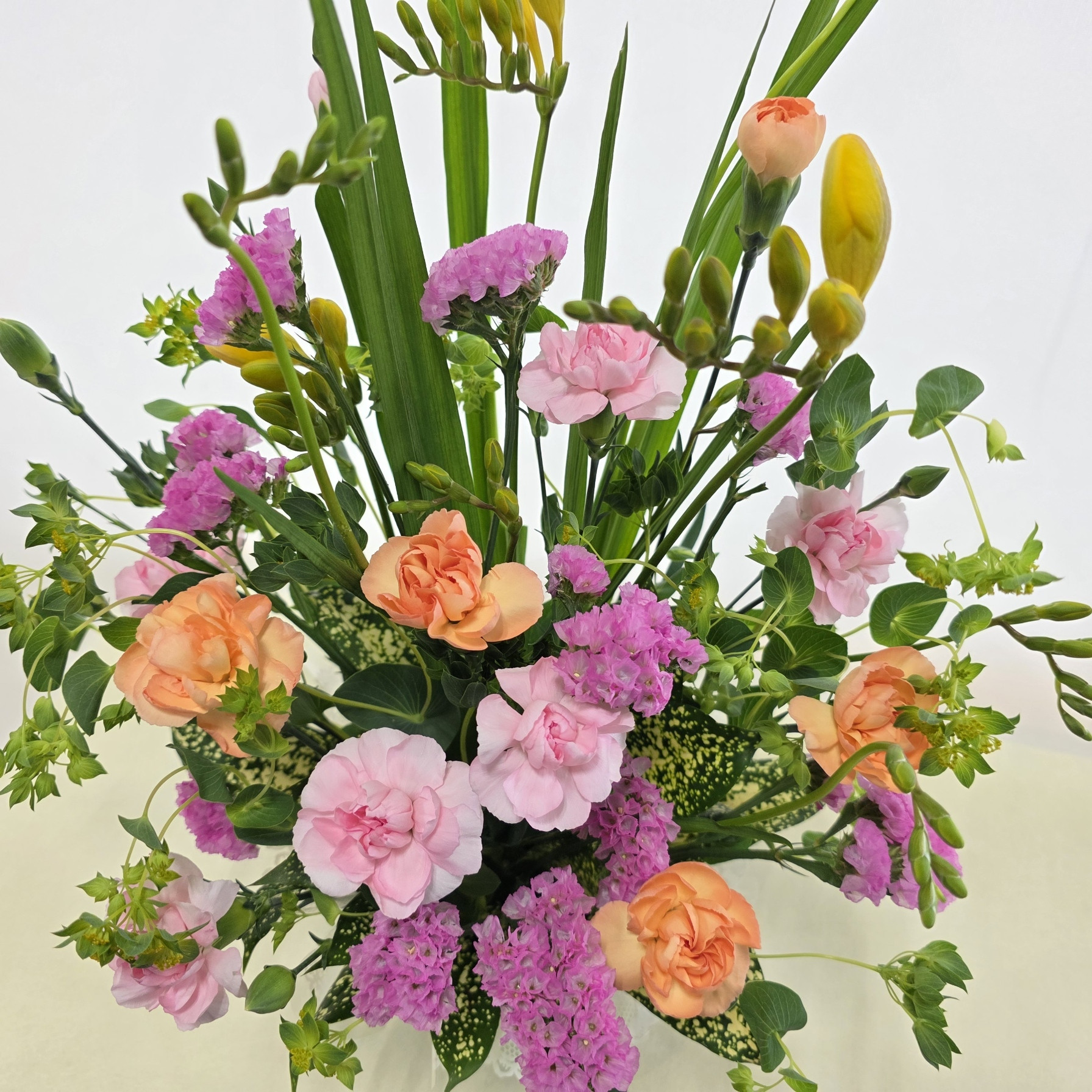 フリージア、ブプレリウム、スターチス、スプレーカーネーション、ゴッドセアナ